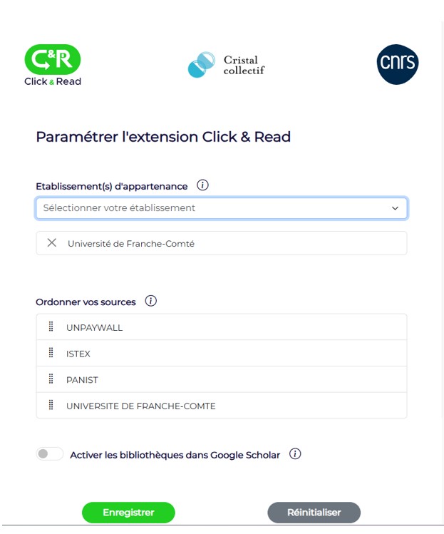 Click & Read est une extension de navigateur qui permet un accès direct au texte intégral des ressources auxquelles l’université est abonnée, ainsi qu’à celles disponibles via les plateformes ISTEX, PANIST et Unpaywall.
